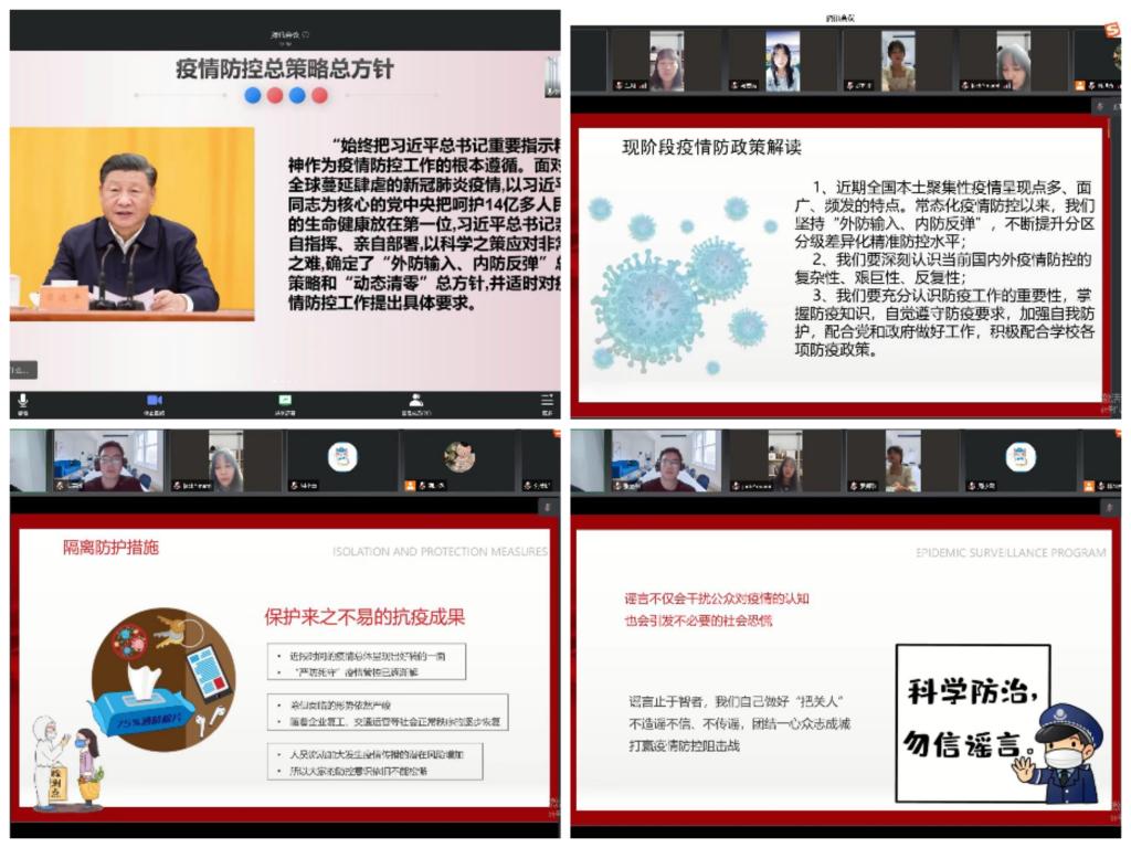 4月26日晚,英国上市公司官网36520个班级组织召开五一安全及疫情防控主题班会,院领导班子成员、班主任及全体员工参加。